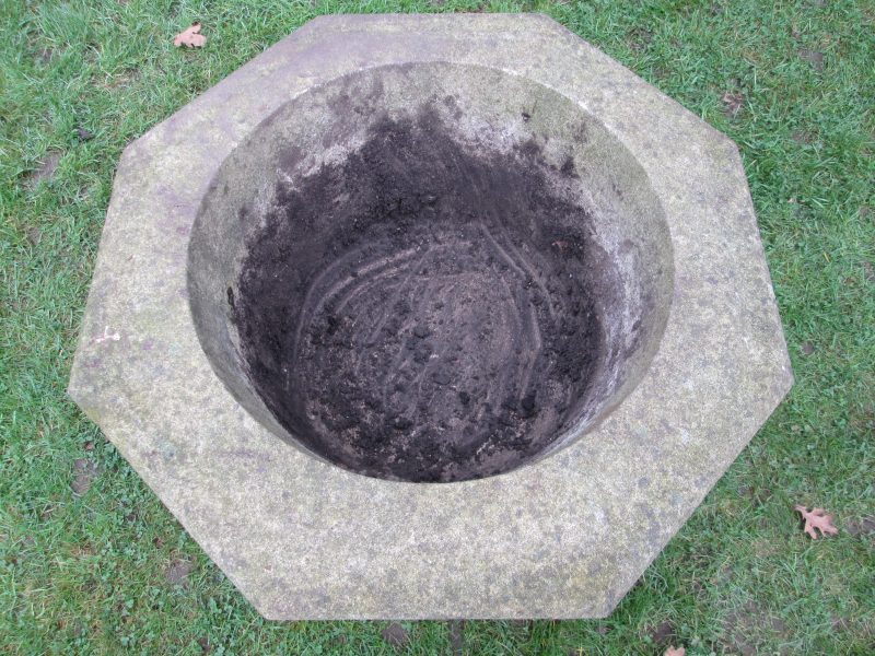 beautiful large one-piece gothic style urn. vintage in age (60s-70s) and made of composite stone. great condition for age, with an attractive weathered patina.