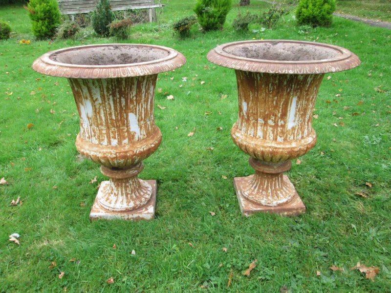 large pair cast iron urns